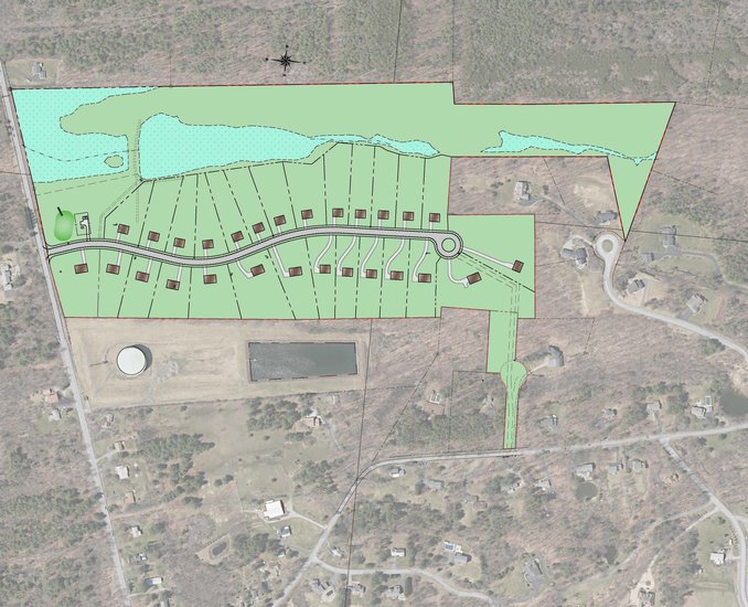 The size of the homes, the board was told, would be around 2,000 to 2,200 square feet and larger, resembling other nearby neighborhoods. The development would require bringing substantial infrastructure into a largely rural tract, with more than 2,000 linear feet of new road proposed, along with municipal water service, and a private wastewater treatment plant.