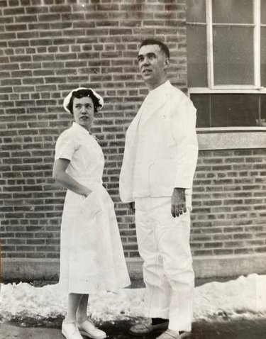 In the mid-1950s, Shirley (née Atkins) Casey, originally of Westerlo, and her husband, Dr. Clifford Casey, stood outside of a building at Albany Medical Center. Charlie Casey said his mother had just finished nursing school and his father was a newly minted doctor; they wed in 1953.