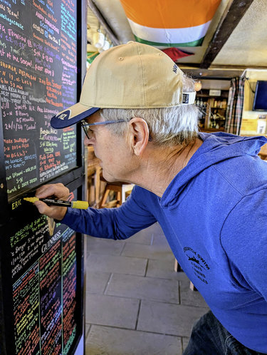Open-air swimmer Eric Durban signs another pub wall