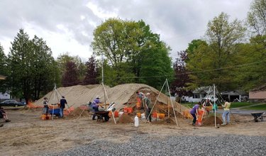 Volunteers excavate a house-sized spoil pile left by the construction crew in Lake George village. A regimental button from the First Pennsylvania Battalion placed this cemetery at the time of the American Revolution. Lisa Anderson, the curator of bioarchaeology at the New York State Museum, will talk about the project on April 12 at a free New Scotland Historical Society program.