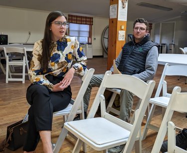 “We’re tackling everything head-on,” Laura Grippen with BST, the accounting firm Berne hired last month, told the board on April 18. Behind her is Robert Queirolo, director of project development at RIC Energy Group, who spoke to the board on behalf of a solar facility proposed for Jody Jansen’s farm that has been halted with a moratorium.