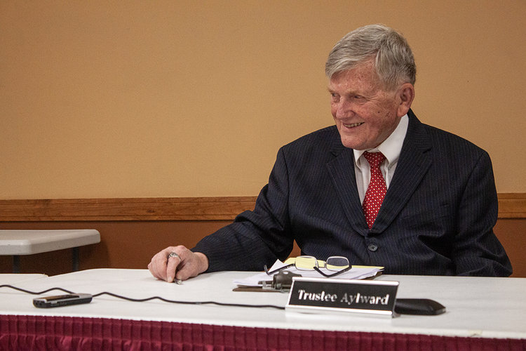 When Mr. Aylward retired in 2015, at the age of 80, from being a village trustee, he spoke at his last meeting “first and foremost” of his gratitude to his wife who “has been by my side throughout all of this.” He asked her to stand, and she did, to a round of applause.