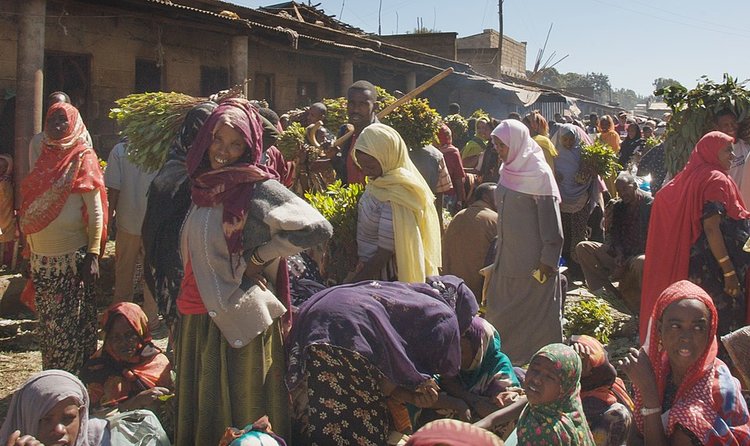 “At The Chat Market” was taken near Harar in southeastern Ethiopia by photographer A. Davey. He explains, “The tropical evergreen plant called ‘chat’ in Ethiopia (Catha edulis, aka qatt, jaad, or khat) has been widely used as a stimulant in east Africa and southern Arabia since antiquity. Chat is legal in several countries, including Ethiopia and some of its neighbors. Chat is illegal in other countries, including the U.S. Chat users prefer to chew the newest leaves from freshly-harvested stems. For this reason, fresh chat stems are bought and sold at daily markets.”