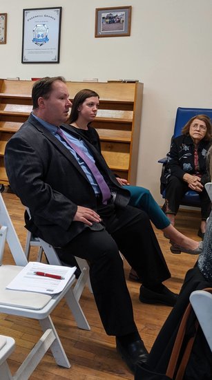 “The better we leverage, the better we do,” Brendan Kennedy, a partner at BST, left, told the Berne Town Board on Wednesday. Next to him is Laura Grippin, a Berne native who works for the firm.