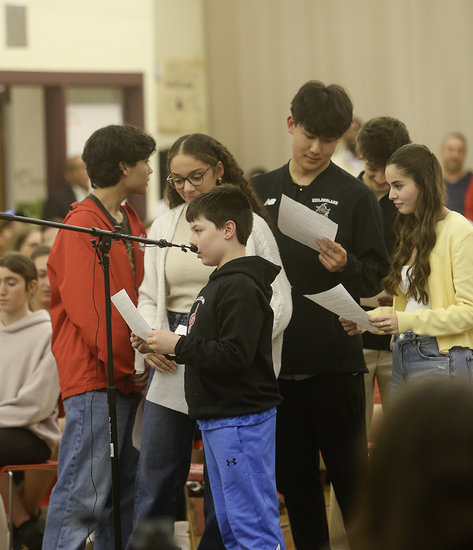 The Enterprise — Michael Koff A bevy of students lined up to speak to the Guilderland School Board about the importance of arts.
