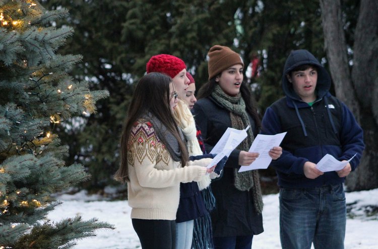 Christmas classic: members of Voorheesville’s high school choir sing “Silent Night” after Voorheesville Mayor Robert Conway flipped on the lights to brighten the Christmas tree in Hotaling Park on Sunday afternoon in Voorheesville.