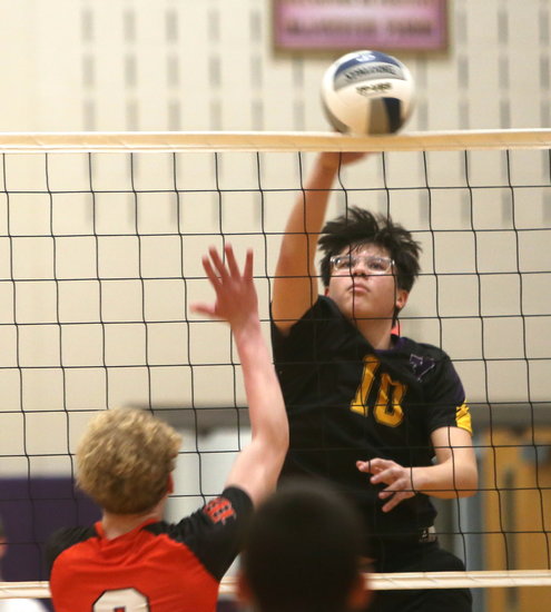 No look hit: Blackbirds’ Ben Reilly uses his right hand to hit the ball in a different direction and away from the Titans’ defenders. Reilly had one ace, seven kills, three blocks, one assist, and three digs.