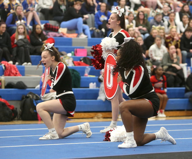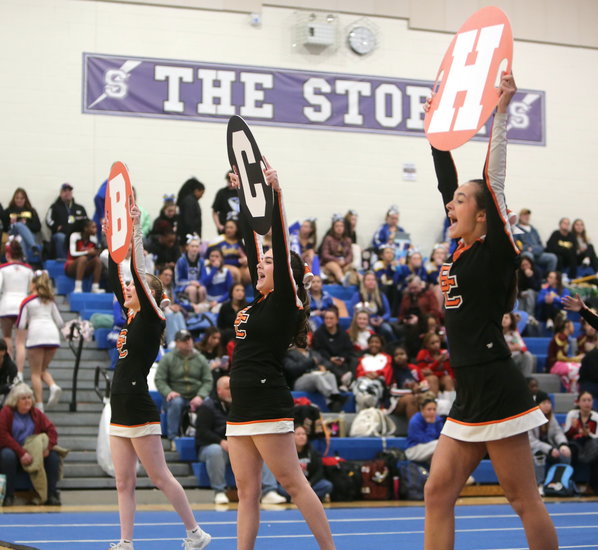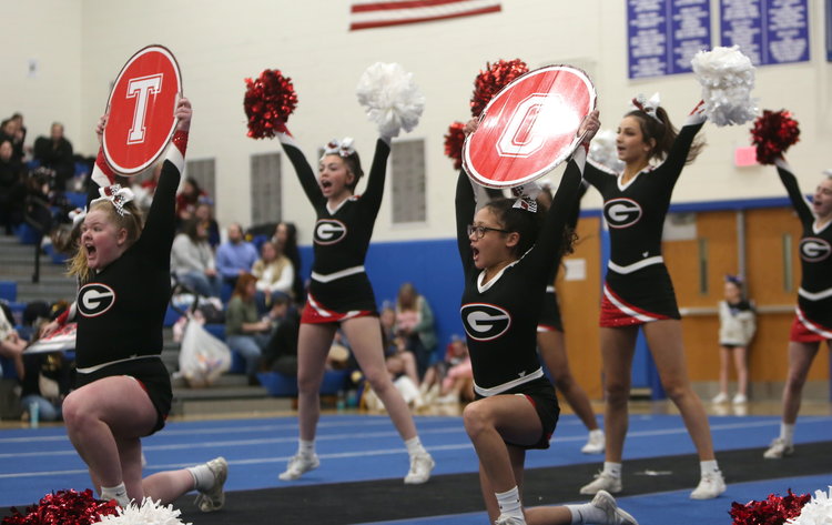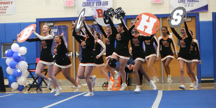 On Saturday, Jan. 24, cheer teams from Berne-Knox-Westerlo, Bethlehem, and Guilderland took to the mat in the third annual Karde’s Angels cheer competition. BKW finished second in Class D, Bethlehem finished fifth in Class B, and Guilderland finished second in Class A.