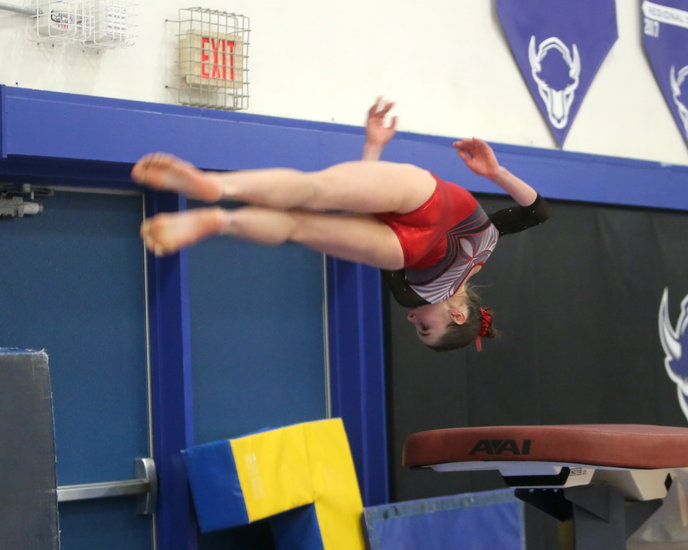 Last Wednesday, Feb. 11, the Bethlehem and Guilderland gymnastic squads battled against Shaker and Saratoga in the Section 2 championships at Shaker High School for a spot in Feb. 28 state competition at Valley Gymnastics in Utica. The Eagles finished third with 166.160 and the Dutch came in fourth with 158.125.