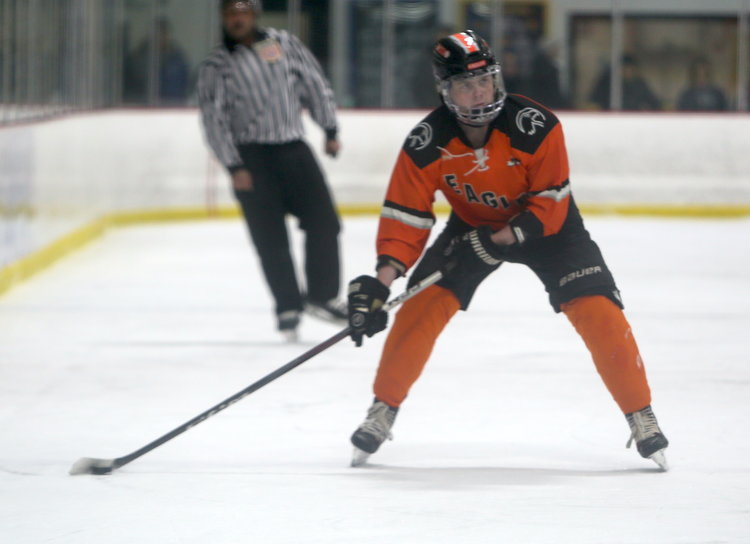 Scanning the ice: Eagles’ Finn Kuracina looks over the open ice that’s in front of him during the first period. Kuracina had an assist.