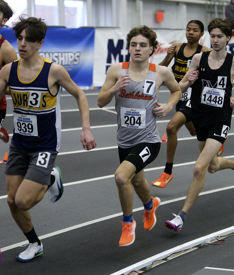 On Friday and Saturday, March 6 and 7, Berne-Knox-Westerlo, Bethlehem, Guilderland, and Voorheesville athletes battled on the track at Ocean Breeze Track & Field Athletic Complex on Staten Island against other top New York state runners. Guilderland won the state championship in the 4x400-meter relay.