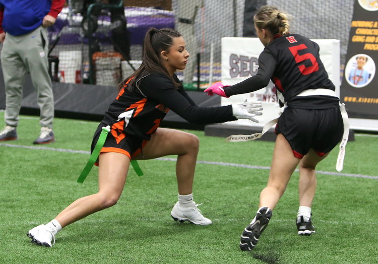 On Tuesday, March 25, the Guilderland and Bethlehem flag football teams participated in tune-up drills for the upcoming season at the first-ever flag football jamboree at the dome at Christian Brothers Academy. The schools got three special instructors in players from the New York Giants.