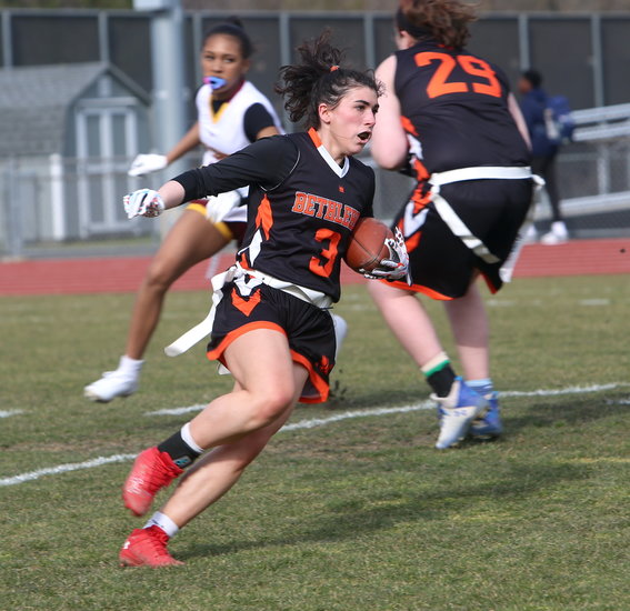 On Monday afternoon, March 30, the Bethlehem flag football team kicked off its home opener of the 2026 season as they took on Colonie. The Wolfpack defense didn’t allow much to the Eagles’ offense as they fell 25 to 0.