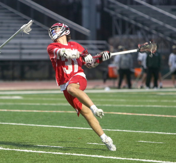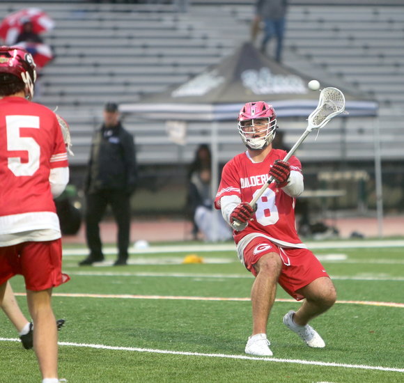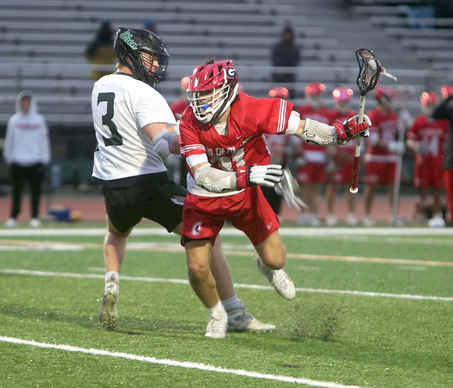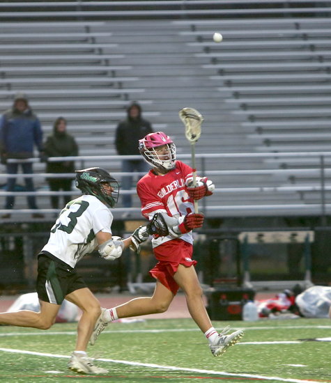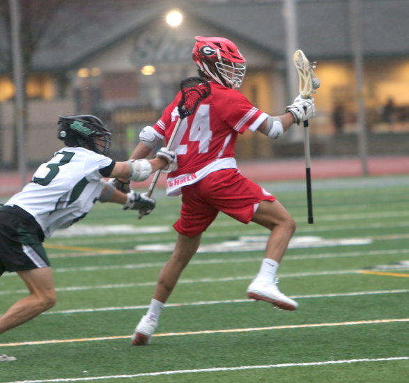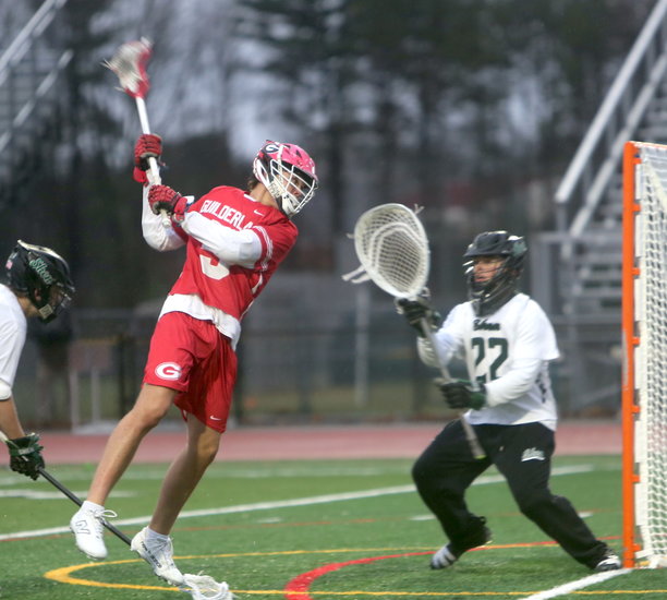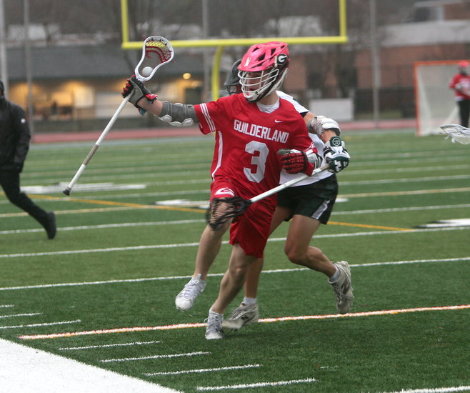 Last Thursday, April 2, the Guilderland boys’ lacrosse team kicked off their spring season with an early test against Shenendehowa at Shenendehowa High School. The early rain didn’t slow down the Dutch as they led from the start but held off Shen’s rally to score late to win 9 to 8.