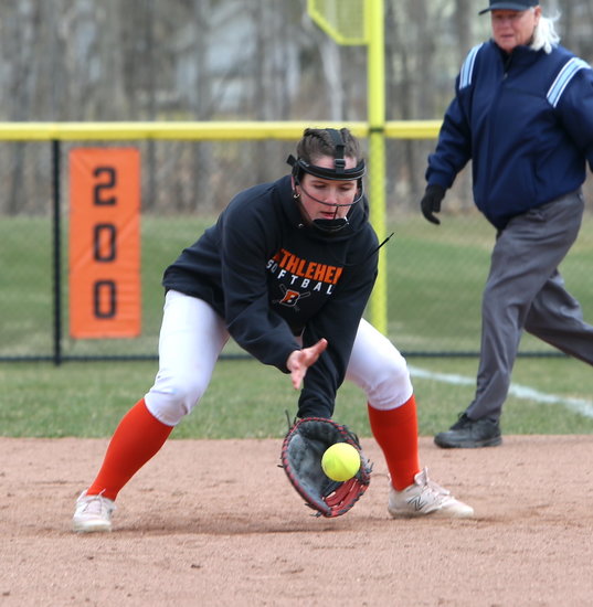 Last Wednesday, April 16, the Bethlehem softball team hosted Mohonasen in a non-league matchup at home during spring break. The cold temps and windy conditions didn’t hamper the Eagles as they smacked the ball around in their 16-to-1 victory.