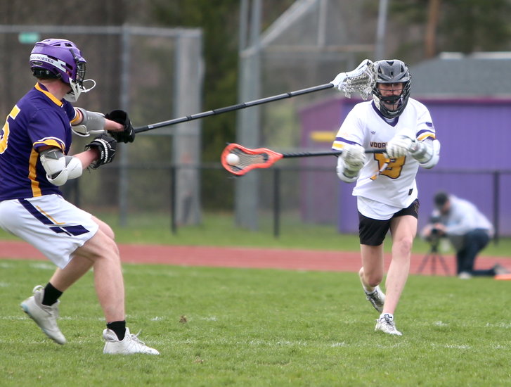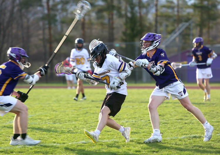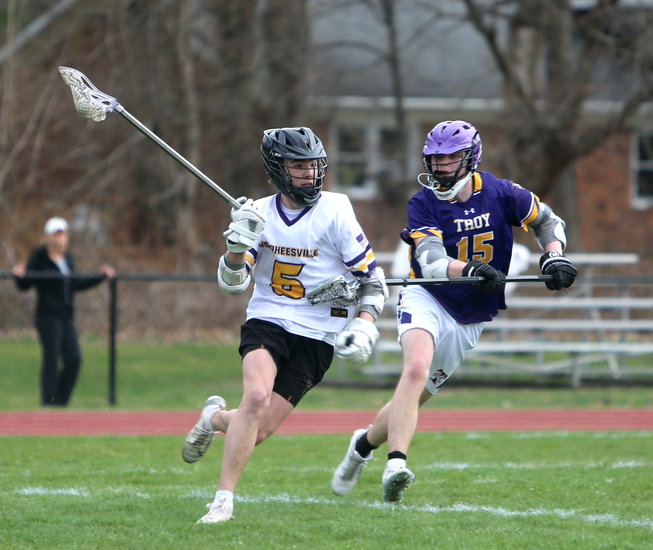 On Friday, April 18, the Voorheesville boys’ lacrosse team took on Troy in a Colonial Council matchup at home. From the opening face-off, the Blackbirds dug their talons in and won easily, 14 to 1.