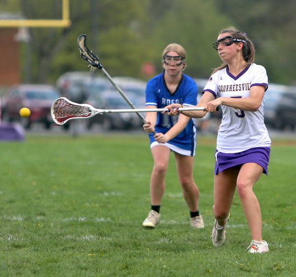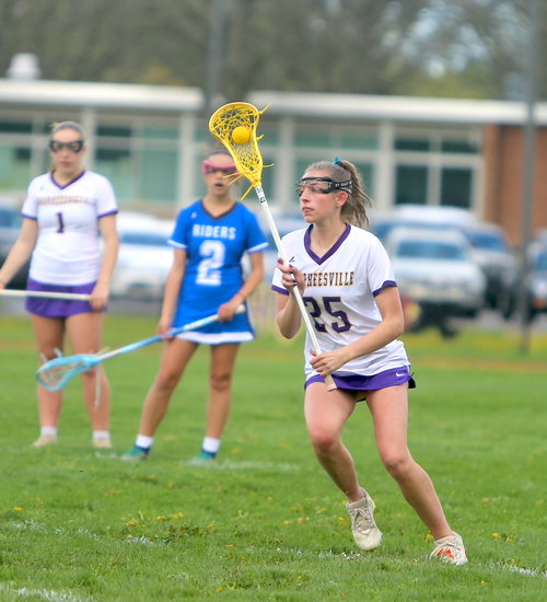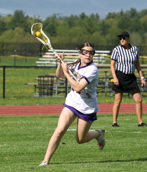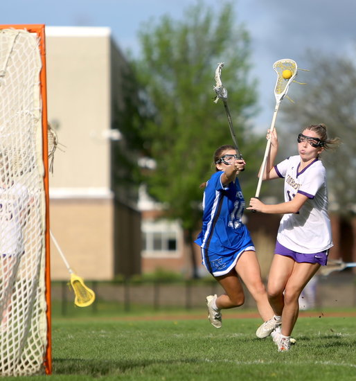 Not only can she save them, she can score as Blackbirds’ Ainsley Esposito looks to get close to goal to get a shot off but the defenders knock the ball loose. Esposito had a goal and also made a save in the first quarter.