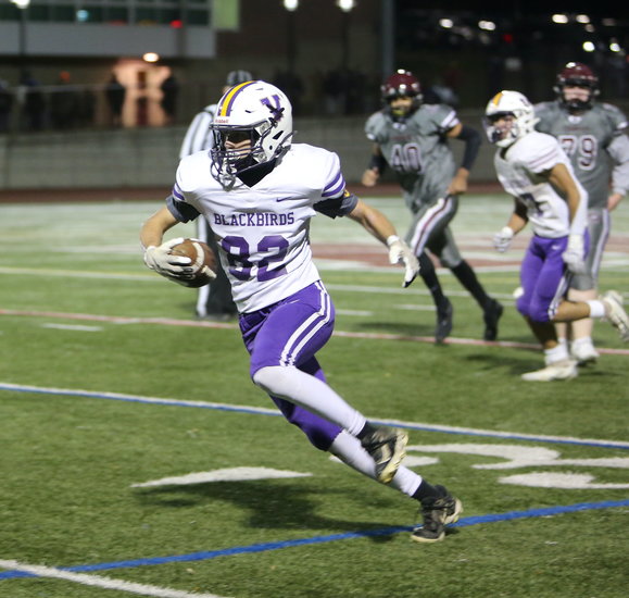 Last Thursday, Nov. 6, the Voorheesville football team traveled to Watervliet, where they started their season, to play in the last game of the year in a cross-over matchup and their head coach Joe Sapineza’s final game. The Blackbirds started quick and didn’t let up as they soared to a 41-0 win.