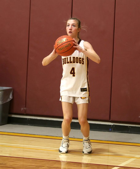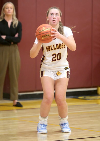Free look: Bulldogs’ Kaylee Fryer holds the ball as she prepares to take a three-point shot in the fourth quarter. Fryer had a rebound.
