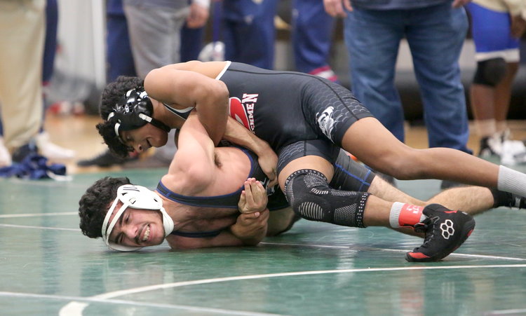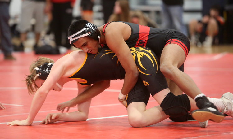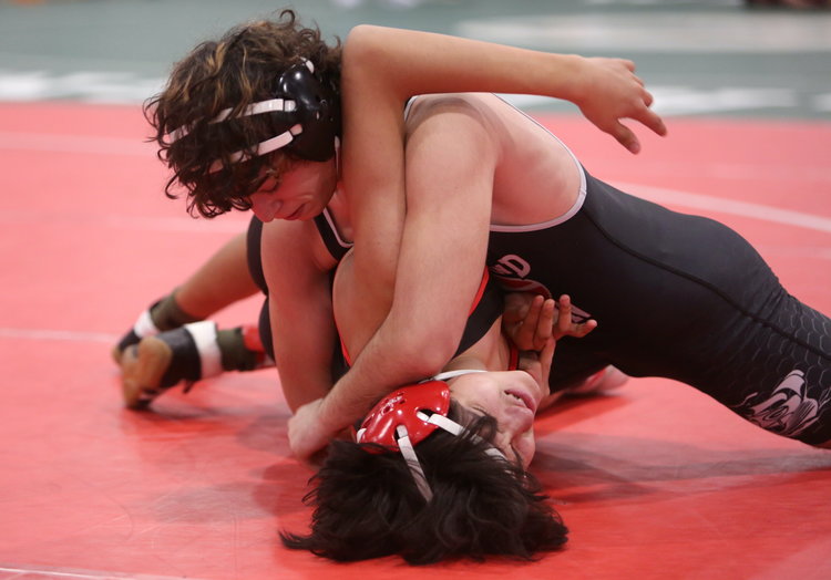 On Saturday, Dec. 13, the Berne-Knox-Westerlo-Middleburgh and Guilderland varsity wrestling squads battled against top teams in the Wrangle on the Plains tournament at the Impact Athletic Center.