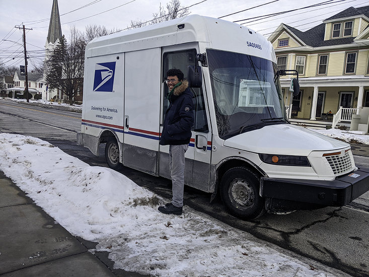 Demarco Bryant, a mail carrier with the Altamont post office, makes a stop on Maple Avenue Wednesday. He is driving a Next-Generation Delivery Vehicle, known as an NGDV, which he says can run on gas or electricity. Bryant also said that Altamont and Voorheesville are the first post offices in the area to get NGDVs. According to the United States Postal Service, as of Dec. 1, over 35,000 of the new vehicles were on the road. In a $9.6 million upgrade of its delivery fleet, USPS plans to have 106,000 new vehicles by 2028. USPS says, “The new vehicles offer better visibility, ergonomic seating, air conditioning, safety features and user-friendly operations, along with increased cargo capacity to allow more packages to be carried per trip, boosting environmental and operating efficiency.”