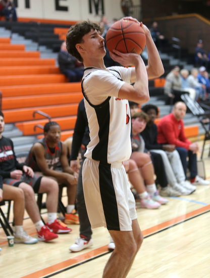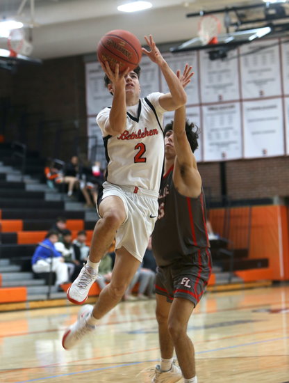 Leaving the fingers: Eagles’ Henry Lehmann goes up for a layup as the ball rolls off his fingertips towards the basket. Lehmann had two points.